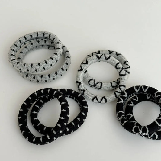 Black & White Patterned Seamless Hair Ties (Set of 8)