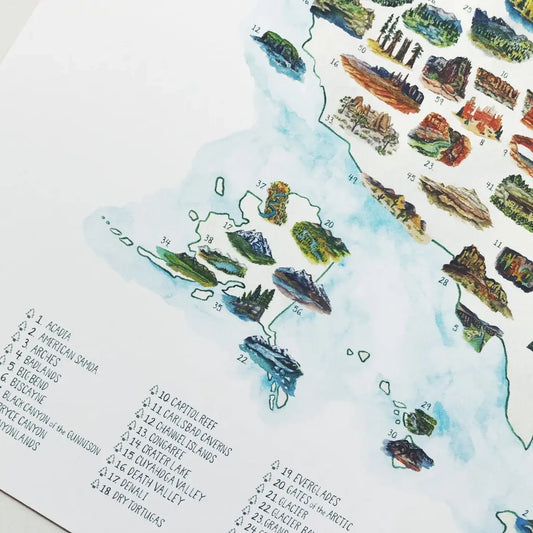 National Park Checklist 11" x 14" Map Print